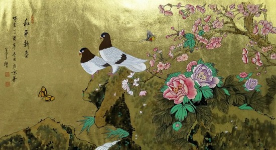 手繪金箔花鳥篇